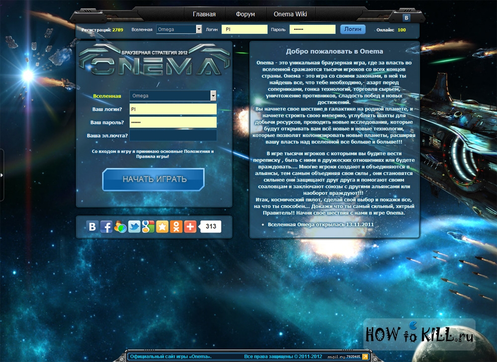 Спеши зарегестрироваться и начать покорение вселенной Onema вместе со своими друзьями. Сайт игры : www.onema.ru