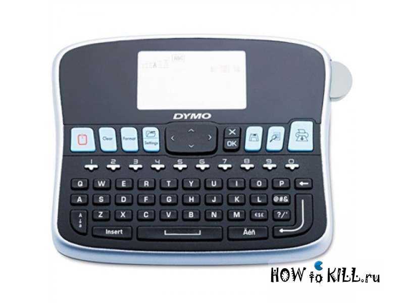 Принтер русифицирован. Кнопки на лицевой панели расположены в три ряда и повторяют раскладку клавиатуры QWERTY. Это не только удобно, но и упрощает освоение. Для переключения с кириллицы на латиницу служит специальная клавиша. Так же быстро можно перейти к печати цифр и знаков пунктуации. Для контроля ввода используется широкий ЖК-дисплей: он позволяет предварительно оценить «полноценность» этикетки перед печатью. Хотя на дисплее одновременно может отображаться примерно 13 символов (реальное количество зависит от ширины того или иного знака), буфер ввода допускает ввод до 99 символов.